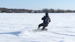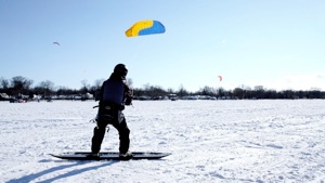 Always check the ice condition before you start sailing. Drill holes in the area where you are going to sail in to test ice thickness. Especially important in the beginning of the season. Make sure the ice thickness is not less than 4 inch and hard (known as black ice). Never go on the ice alone. Wear a life jacket, helmet and have an ice pick with you at all times. Ice/snow sailing & kitesurfing are a wonderful winter sport. Play it safe at all times.